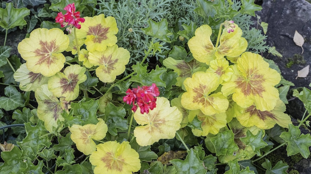 The location of the geranium should not be too dark and cold. The plants originally come from South Africa. They need sufficient light and warmth to thrive. If the location is too cold, the leaves of the geranium turn red and then yellow. If the location is too dark, the plant cannot produce enough chlorophyll, the green plant pigment.