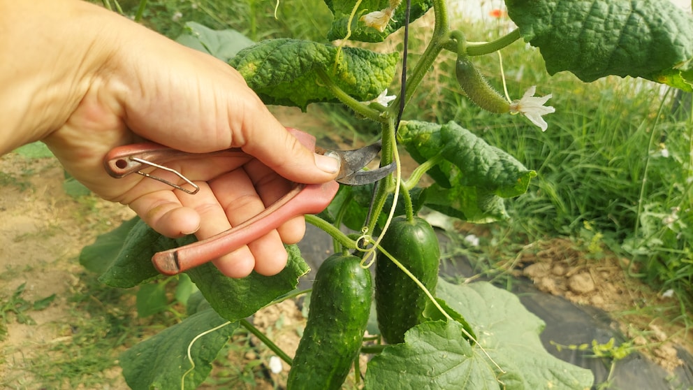 Instead of tearing or pulling, cucumbers should always be cut with a sharp knife or garden shears. As close to the stem base as possible, without touching or squeezing the surrounding plant parts. A clean cut promotes quick wound healing and protects the plant from further damage.