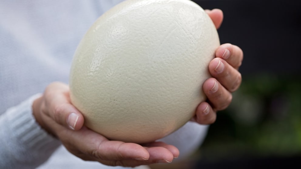 Ostrich eggs, which can weigh up to two kilograms, are usually offered by ostrich farms. A wide selection can be found online. The huge eggs are in high demand; they taste like chicken eggs but, unlike them, are also suitable for people allergic to chicken egg protein. Note: The content of an ostrich egg is comparable in volume to 25 chicken eggs. A full ostrich egg costs around 30 euros.