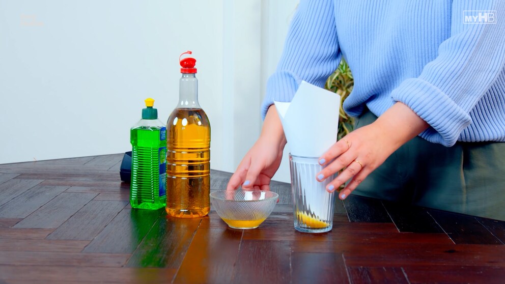 Fruit flies are active year-round but reproduce particularly quickly at higher temperatures starting around 77 degrees Fahrenheit. Even a small amount of exposed fruit is enough for them to lay their eggs on. Within a day, larvae hatch and develop into new flies in about ten days–quickly leading to larger infestations in the kitchen. In the video series “Easy Home,” myHOMEBOOK editor Katharina Regenthal shows how to easily make a fruit fly trap.