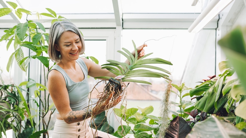 Good, airy orchid substrate is important. “Ensure sufficient light without direct sunlight and stable temperatures.” To prevent root rot, orchids should be watered sparingly: “In the first few days after repotting, the plants should only be misted,” Treder explains. Once the plant is acclimated and begins to grow, it can be supplied with special orchid fertilizer.