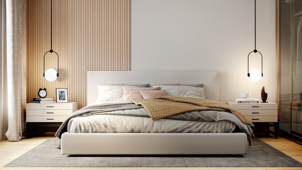 Cold, bluish light should be avoided in the bedroom as it tends to be activating. Modern LEDs are best suited: They are energy-efficient, long-lasting, and available in many variants—from dimmable to smart control via app or voice assistant.